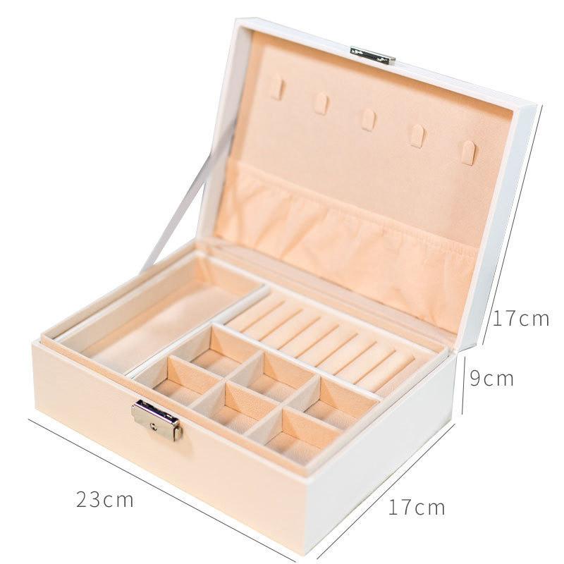 Багатофункціональна дворівнева скринька органайзер RESTEQ для ювелірних виробів! Жіноча скринька для ювелірних виробів виконана з якісного шкірозамінника, усередині - якісний оксамит. Скринька білого кольору. Усередині шкатулки є багато різних відділень та вставок під прикраси: сережки, каблучки, браслети, ланцюжки. Специфікація: Колір білий Розміри: 23x17x9cm Вага: 1250 г Матеріал: штучна шкіра, екологічний оксамит Артикул: VA-1344229715