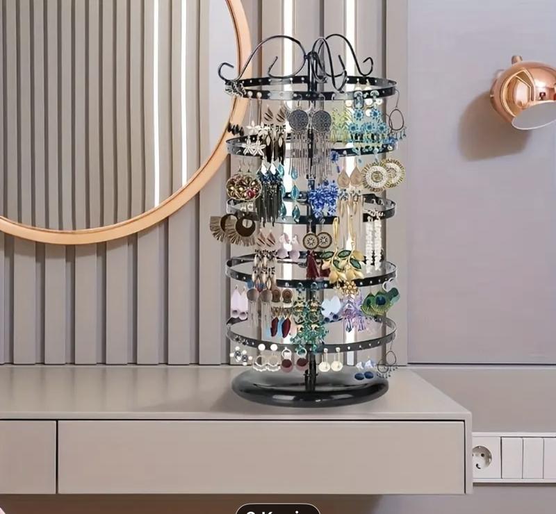 В ідеальному стані Дуже зручний обертовий органайзер для прикрас Висота 53 см Для сережок є 288 дірочок , та додаткові гачки для намиста, ланцюжків