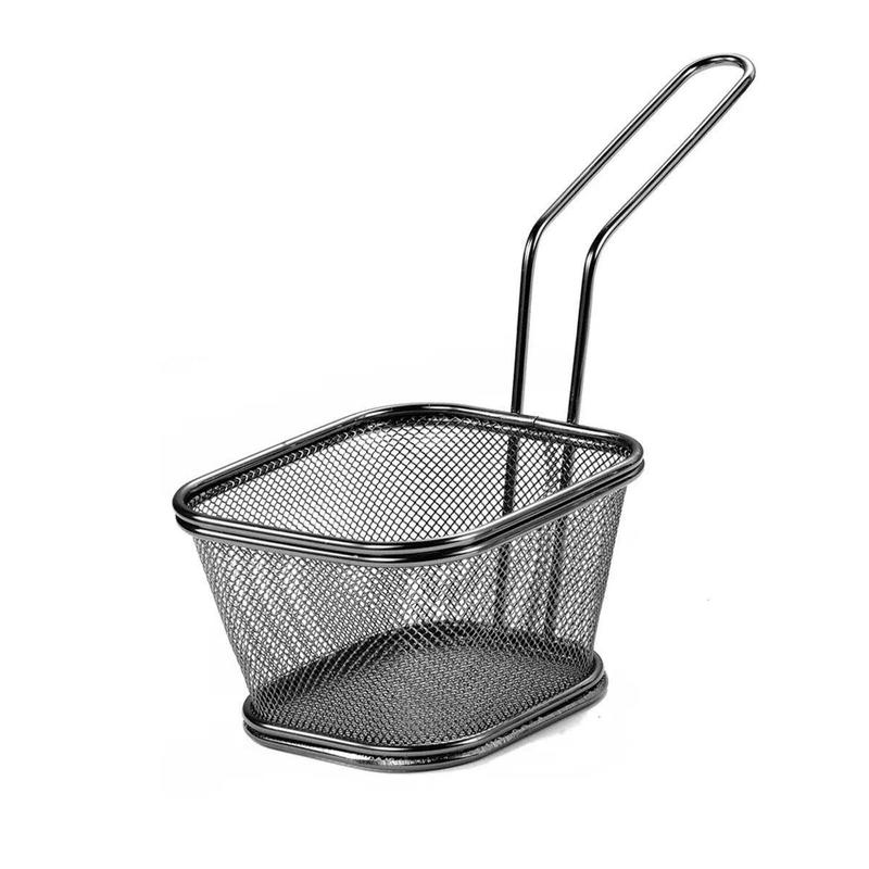 Стильная сервировочная корзина для фри и снеков станет незаменимым аксессуаром для оригинальной подачи любимых закусок. Изготовлена из нержавеющей стали с гальваническим покрытием, он совмещает изысканный вид с прочностью и долговечностью. Компактный размер и удобная форма позволяют подавать картофель фри, чипсы или другие закуски в элегантной манере. Основные характеристики: Материал: нержавеющая сталь; Размер: 13х11х7 см; Высота с ручкой: 21 см; Глубина: 7 см; Толщина проволоки: 0.8 мм. Корзина имеет оптимальные размеры 13×11×7 см, что делает ее универсальной как для домашнего использования, так и для заведений питания. Гальваническое покрытие защищает поверхность износа и обеспечивает устойчивость к воздействию влаги, сохраняя презентабельный вид даже после длительного использования. Благодаря легкому уходу и оригинальному дизайну, эта корзина станет ярким акцентом на вашем столе, добавляя нотку современности и эстетики в сервировку блюд.