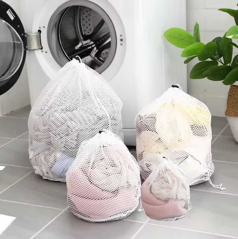 Комплект мешков 4 шт для белья со шнурком для стирки в стиральной машине,сетка