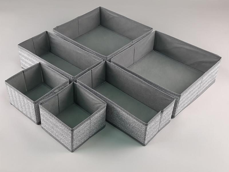 Набор органайзеров 6 штук серого цвета для хранения обуви или небольших предметов. Размеры коробок в наборе: 14*14*10 - 2 штуки 28*14*10 - 2 штуки 28*28*10 - 2 штуки Органайзер удобно использовать для хранения одежды, белья, детских игрушек, аксессуаров гардероба и других вещей. Органайзер изготовлен из флизелина - дышащей ткани и картона. Если вам понадобится его сложить, это очень легко сделать, в сложенном виде органайзер занимает мало места. Очень удобен в домашнем использовании: игрушки, вещи или любые другие предметы, всегда будут в порядке и у вас под рукой. В сложенном виде органайзер очень компактный и занимает мало места. Красивый и практичный в использовании.