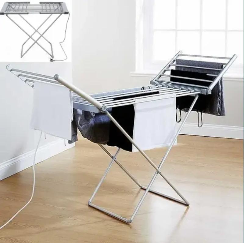 Электросушилка -- практичное решение для дома во время дождей, повышенной влажности или в холодный период года. Благодаря подогреву стоек до 45-55°C, бельё высыхает в два раза быстрее, чем на обычной сушилке. Складная конструкция экономит пространство, поэтому сушилка идеально подходит для небольших квартир. После использования её можно легко сложить и убрать за шкаф или под кровать. Преимущества модели: - Подогрев всех прутьев, включая боковые крылья - Экономное потребление электроэнергии -- всего 1 кВт ≈ за 5 часов работы - До 13 м полезной площади для размещения белья - Ускоряет сушку одежды в два раза - Бельё после сушки -- без сильных заломов - Идеальна для деликатных тканей после ручной стирки - Безопасна в использовании -- корпус не нагревается - Прочная и лёгкая алюминиевая конструкция - Рассчитана на длительный срок службы Характеристики: - Тип: складная напольная сушилка для белья - Материал: металл + пластик - Конструкция: крестовидная, раскладные крылья - Размер в разложенном виде: 148 × 54 × 93 см - Мощность: 230 Вт - Напряжение: 220 В / 50 Гц - Температура нагрева: 45-55°C - Максимальная нагрузка: до 15 кг - Режим: 1 (вкл/выкл с подогревом или без)