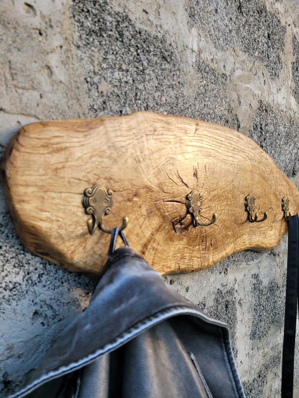 Эта деревянная вешалка имеет уникальный дизайн с металлическими крючками. Он может быть использован для хранения одежды, аксессуаров или других предметов. Его природная текстура и оттенок дерева придают ему особый шарм и делают его отличным дополнением к любому интерьеру.