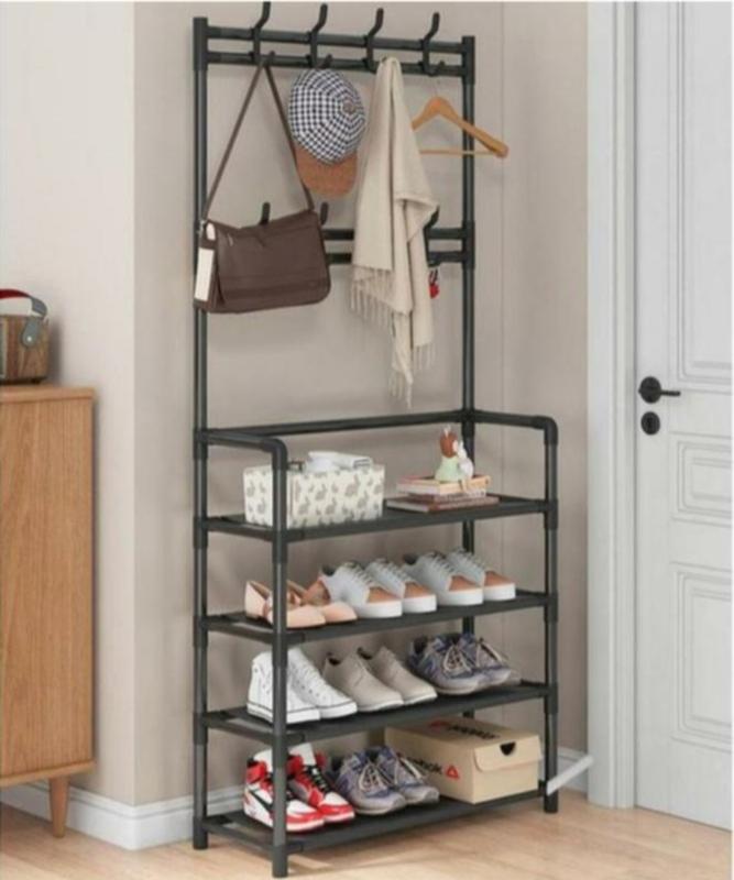 Мечтаете о организованной и стильной прихожей? Вешалка стойкая сборная для пола – это идеальное решение! Эта практичная и функциональная вешалка поможет вам разместить одежду, обувь и аксессуары в одном месте. Благодаря компактным размерам она отлично подойдет даже для небольших прихожей. ОСОБЛИВОСТІ ТОВАРУ: Емкость: Полки для обуви и место для одежды. Сборная конструкция: легкая и быстрая сборка без специальных инструментов. Компактность: Оптимальные размеры для любой прихожей 80×26.5x154 см. Практичность: Помогает поддерживать порядок и организованность. Стильный дизайн: Впишется в любой интерьер. ТЕХНИЧЕСКИЕ ХАРАКТЕРИСТИКИ: Размеры: 80×26.5×154 см Материал: металл, пластик Цвет: черный Тип: Напольная, сборная Дополнительно: Полки для обуви.
