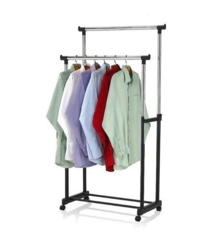 УКРПОПТОЮ ЗАМЛЕНИЯ ТОЛЬКО ИЗ-ОПЛАТОЮ на КАРТКЕ ПРОДАВЦА!!! ПОДЛОГОВА ВИШАЛКА СТОЙКА. ТЕЛЕСКОПІЧНА ПОДВІЙНА ДЛЯ ОДЯГУ ТА ВЗУТТЯ DOUBLE POLE. Размещение вещей в квартире, а особенно в квартире небольшого размера, дело непростое, есть всего несколько вариантов при которых количество свободного места остается больше – это или встроенный шкаф на всю стену. Трубки стойки Double Pole изготовлены из алюминия, и покрыты защитной краской оливкового цвета, полые внутри, поэтому стойка даже в сборнике будет весить не больше 1.5 кг. предотвращают случайное падение одежды если она будет просто накинута на стойку. ПЕРЕВАГИ СТІЙКИ ДЛЯ ОДЯГУ DOUBLE POLE: Достаточно габаритная, для размещения большего количества одежды; Компактная, в глубину, для сохранения пространства; Имеет легкий вес; Легкая и достаточно быстрая сборка; Не требует использования дополнительных инструментов (только руки); Благодаря колесикам – легко транспортируется даже загруженной; Двойная стойка; Поперечные небольшие перекладины; В нижней части стойки – небольшая полочка для обуви; Пластиковые заглушки на трубы. КОМПЛЕКТАЦІЯ СТІЙКИ ДЛЯ ОДЯГУ DOUBLE POLE: 6 больших труб диаметром 25 мм; 4 средних труб диаметром 22 мм; 2 малых труб, диаметром 19 мм; 6 маленьких коротких трубочек диаметром 22 мм; 2 ножки-стойки (пластиковые); 8 Т-образных креплений; 4 заглушки;