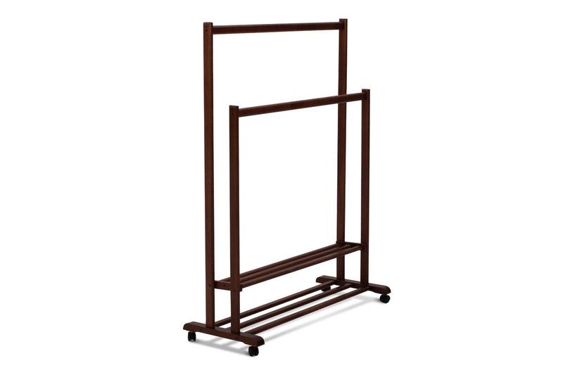 Матеріал деревини: Колір венге .Масив вільхи Висота: 1430 мм, Глибина: 490 мм, Ширина: 1070 мм. Подвійні напольні плечики з поличкою Сігма виготовлені з масиву вільхи та мають матове фарбування.