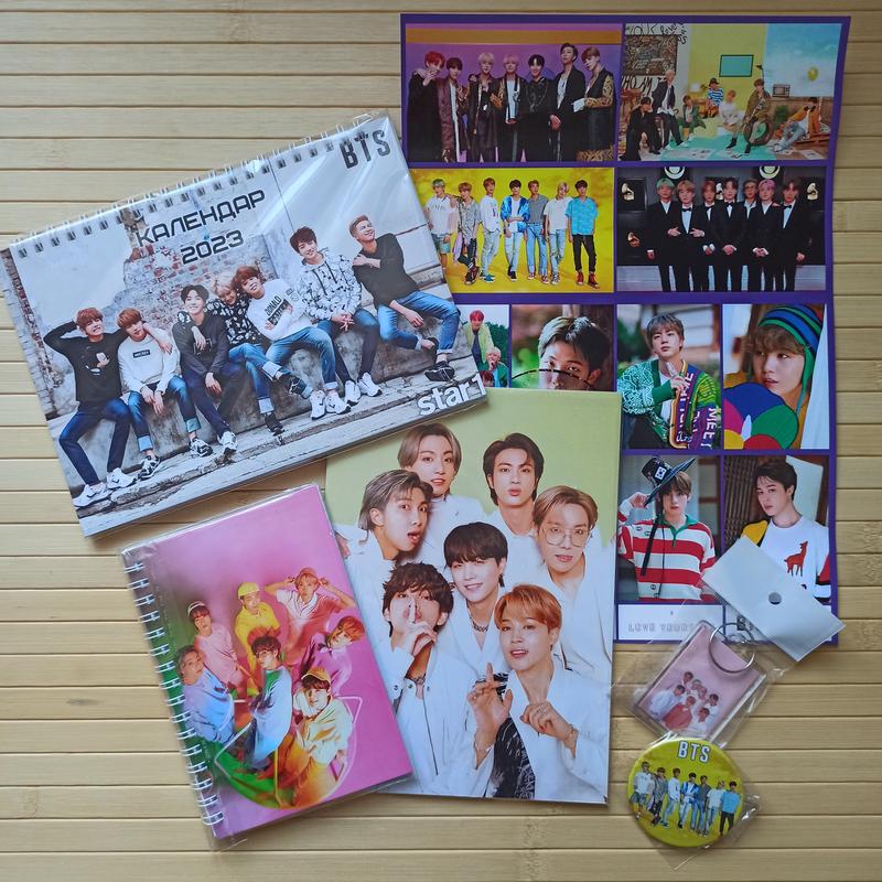 Набір bts календар для стола стікерпак блокнот зошит значок брелок