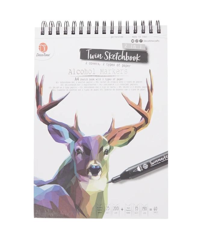 Скетчбук 2 в 1 60 аркушів Для спиртових і акварельних фломастерів Скетчбук А4 на 2 види паперу Створюйте найкрасивіші малюнки в альбомі спиртовими та акварельними фломастерами Пов'язана по спіралі Тверда обкладинка
