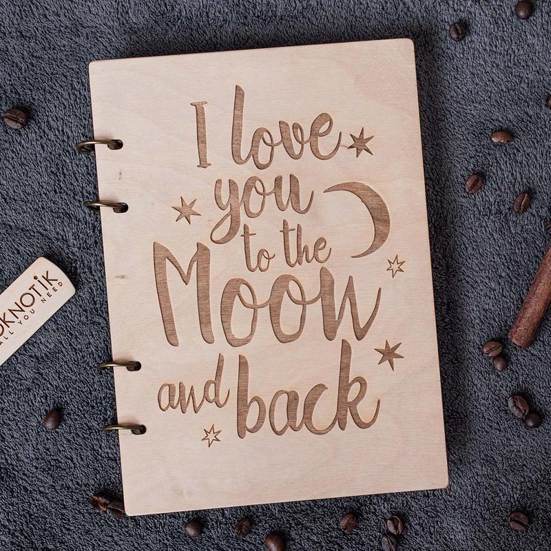 Именной подарочный блокнот любимой девушке. деревянный блокнот с гравировкой love you