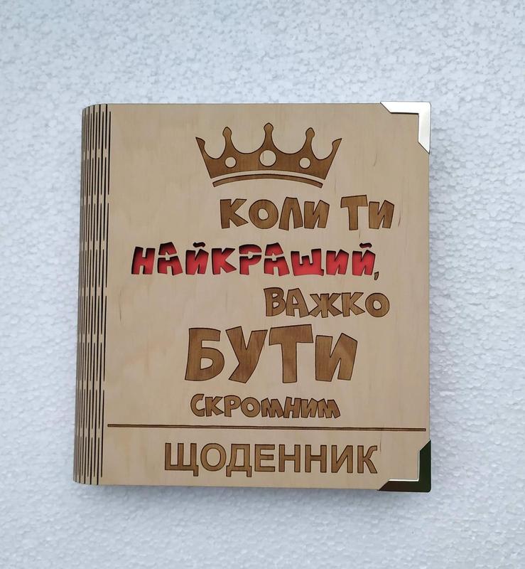Эксклюзивный и необычный подарок - деревянный блокнот "Важко бути скромним, коли ти найкращий" на цельной обложке. Обложка называется "гофра" и напоминает книжный переплет. Внутри находится кольцевой механизм, позволяющий регулярно менять листы (стандартный размер А5). Поэтому такой блокнот называют вечным. Такой блокнот из дерева станет отличным подарком на любой праздник. Он и выглядит роскошно, и при этом необычайно функционален. Все гениальные мысли так и просятся на его страницы. Купить такой блокнот в обычном магазине нельзя, так как он сделан по индивидуальному эскизу. Размеры: 21*23 см (бумага формата А5). Цвет - натуральная фанера. Оттенок может немного отличаться от фото, так как каждый кусок фанеры имеет свою уникальную структуру и рисунок. Кол-во листов - 150. Чистые листы Справа от бумаги находится эко-ручка в универсальном держателе. Цвет ручки может отличаться от фото (не выбирается).