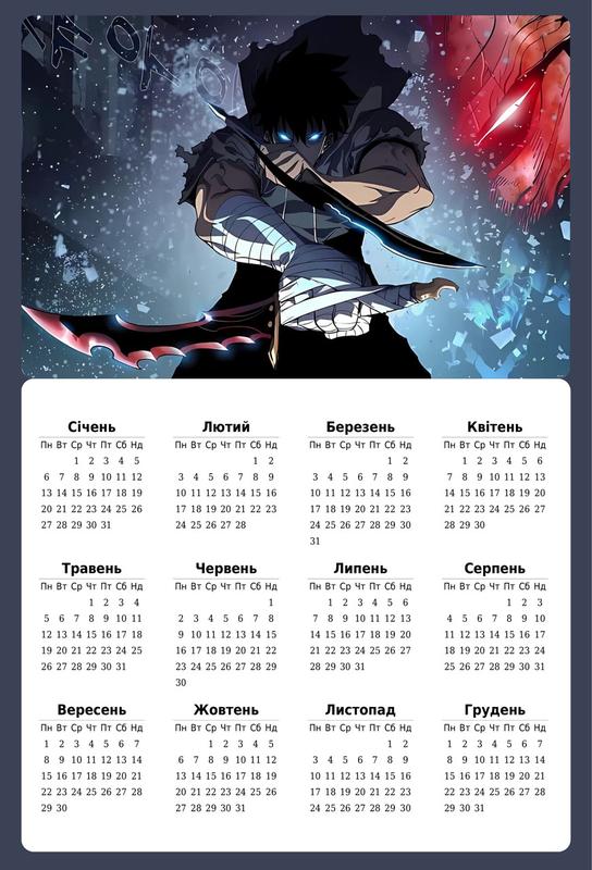 Листовий календар solo leveling підняття рівня поодинці а3 на 2025 рік 19271
