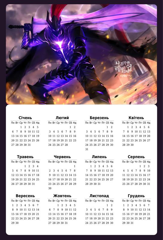 Листовий календар solo leveling підняття рівня поодинці а3 на 2025 рік