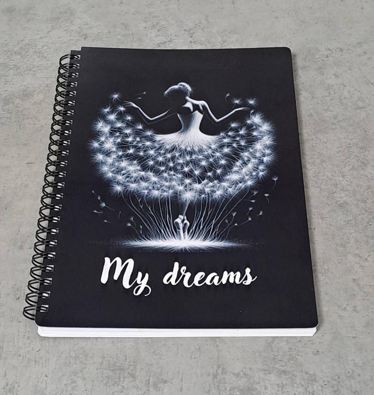 Блокнот "Балерина" формата А5, боковая пружина, в клетку, обложка - бумага 230 г/м2, ламинация, страницы - офисная бумага, 80 г/м2, 80 листков.