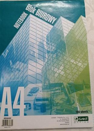 Лист, блокнот в клетку, формат А4, 100 листов.