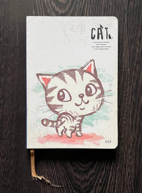 Милий блокнот із зображенням котика в твердій обкладинці — міцний, зручний і підходить для щоденного використання. Сторінки у лінію, папір приємний, є закладка. Кілька перших сторінок вирвано, але загальний стан дуже хороший — чистий та акуратний. 📌 Тверда обкладинка 📌 Формат близько A5 📌 Закладка-стрічка 📌 Милий дизайн з котиком