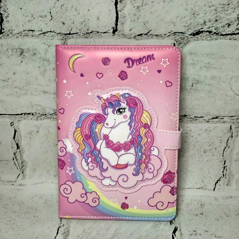 Блокнот в плотной обложке из кожзама "Единорог" на магнитной застежке Обложка из кожзама, разноцветные листы. Отличный вариант подарка. Размер - 19х12,7 см Листов - 128