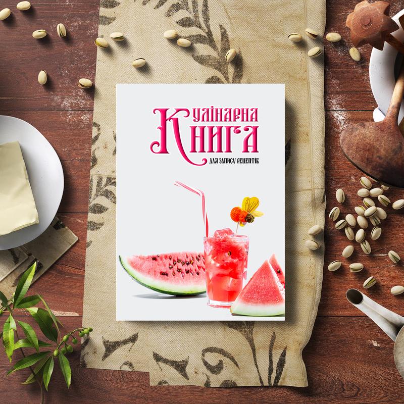 Кулінарна книга для запису рецептів "напій у склянці з бджолою та шматочки кавуну"