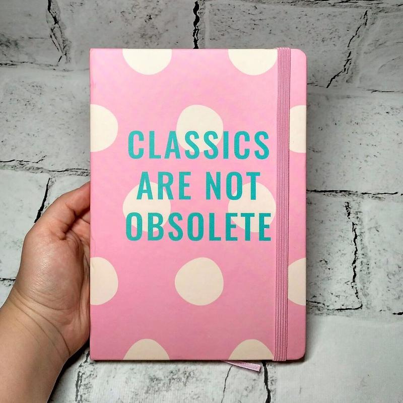 Красивый блокнот в твердом переплете с надписью "Classics are not obsolete". Размер - 21х14,5 см. 96 листов в линейку.