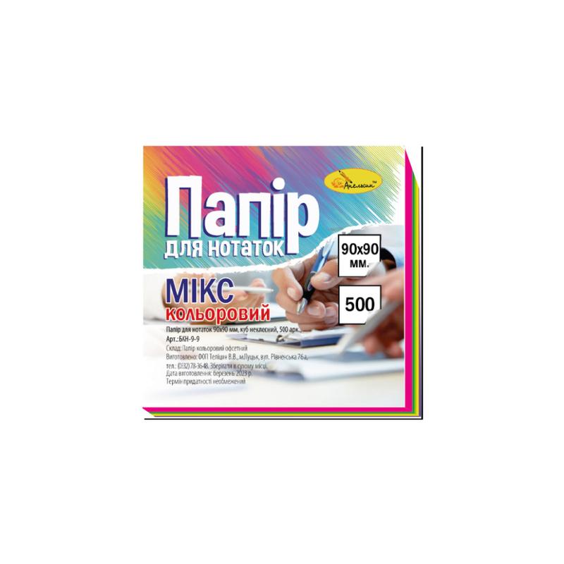 Блок бумаги для заметок "микс" бкн-9-9, 500 листов, не клееный, куб
