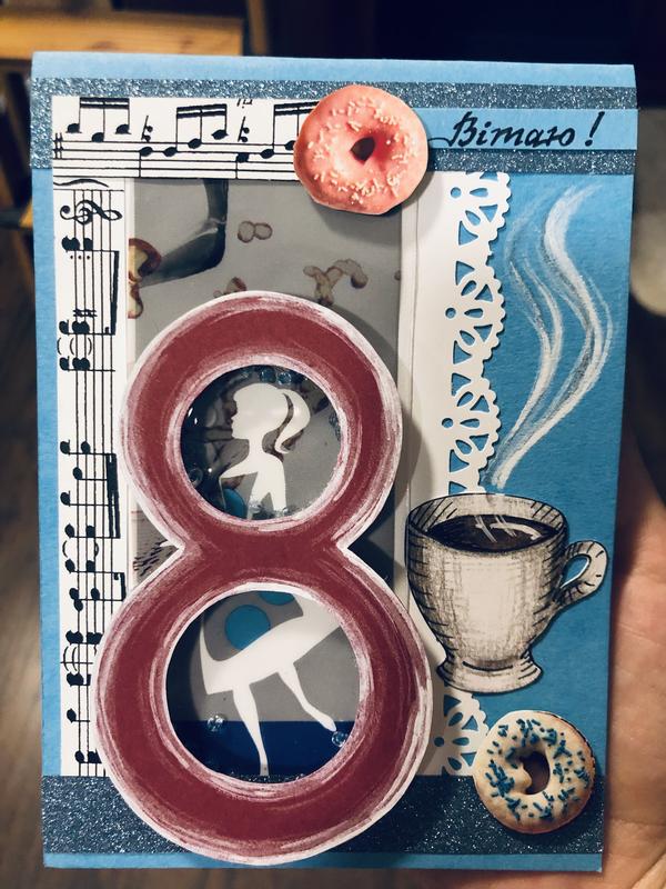 Сделать приятней для бабушки, мамы, сестры, подруги или женщины - это всегда отличный повод поздороваться с праздником и подарить незабываемое открытку. Открытка выполнена собственноручно. Формат - А6. Техники исполнения - шейкер, скетчинг.