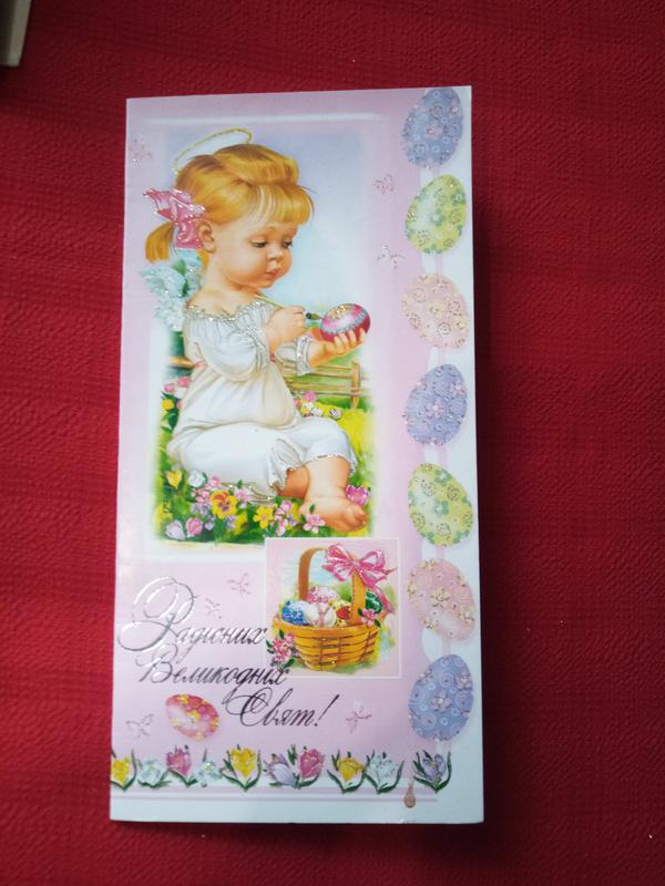 Открытка "радiсних великоднiх свят!" б у 2002 г-картинка девочка красит яйца