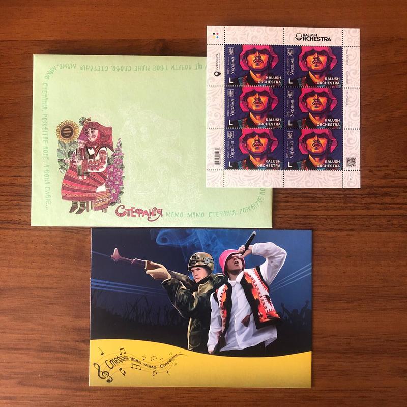 Набор "Kalush Orchestra": конверт+листкая + марки 6 шт. Отправка за счет заказчика после 100% подписки на карт-счет. Отправка по укрошту, новой почте.