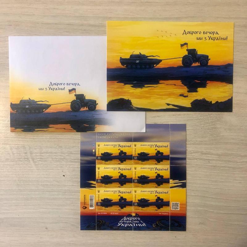 Набор 3 серия "Доброго вечера мы из Украины". Конверт + открытка + марки (М) (блок). Отправка за счет заказчика после 100% подписки на карт-счет. Отправка по укрошту, новой почте.