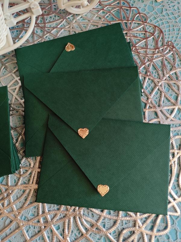 В наличии конверты не стандартного размера - 13.5 см на 9,3 см. Основа конверта - изумрудная дизайнерская бумага плотностью 120 грамм, текстура бумаги "вельвет". Клапан конверта отделан золотым сердечком. Возможно изготовление подобных по заказу, цену уточняйте. Минимальный заказ - 200 грн мой ассортимент. Благодарю за понимание ❤️