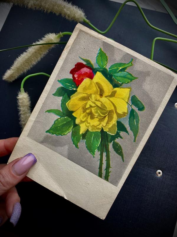 ✨🌼Радянські листівки, - яскраві, чіткі, з відмінною поліграфією, приємні на дотик, - це не просто кольорові картинки минулої епохи, але культурна спадщина, історія очима простих людей! Листівки відображали ситуацію в країні – картинки зі всесоюзних будівництв, сюжети, які пропагують міцну радянську сім'ю, розвиток спорту та інші прикмети часу. Набір листівок - нехитрий сувенір з легкою ноткою ностальгії, непрана пам'ять минулих років: їх купували, дарували, пересилали в конвертах, віддаючи частинку душевного тепла, зберігали в альбомах, щоразу з трепетом занурюючись у минулі враження! Вдивляючись в обличчя, будови, природу, - мимоволі дивуєшся до мурашок! Декоративна листівка - поштова картка з зображенням троянд! Наче звичайні квіти, але з душею! Випущена в видавництвом "Художник РСФСР" у 1959 році. Листівка має унікальний підпис, зроблений від руки чорнилами!