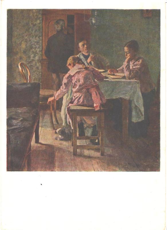 открытка В. Бакшеев "Неудачники (за обедом)" Кировский обл худ. музей изд. Изогиз ссср