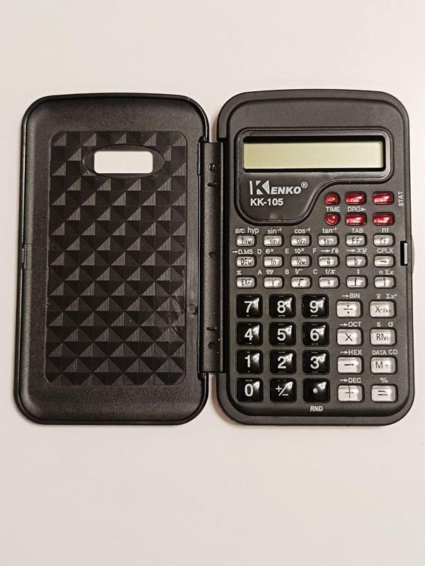 Инженерный калькулятор Kenko KK-105 предназначен для сложных расчетов, которые обычно используются в специализированных сферах деятельности - математиками, физиками и другими учеными и инженерами. Научные инженерные калькуляторы отличаются своей многофункциональностью, с их помощью можно, кроме основных вычислений, присущих всем видам калькуляторов, делать расчеты, задействовав различные тригонометрические функции. Калькулятор 105 имеет 10-ти разрядный жидкокристаллический дисплей, плюс еще один меньший дисплей, на котором может отображаться время. Прибор имеет возможность вычислять логарифмы, менять угловой режим в тригонометрических расчетах с помощью кнопки преобразования, есть память на числа. С помощью такого калькулятора Вы легко сможете возвести число в степень, вычислить гиперболическую функцию, проводить вычисления в различных режимах. Всего в приборе 56 функций.
