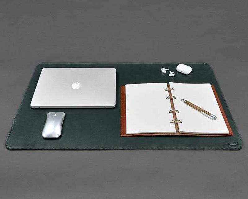 Кожаный коврик, бювар на стол руководителя, для рабочего стола двухсторонний зеленый