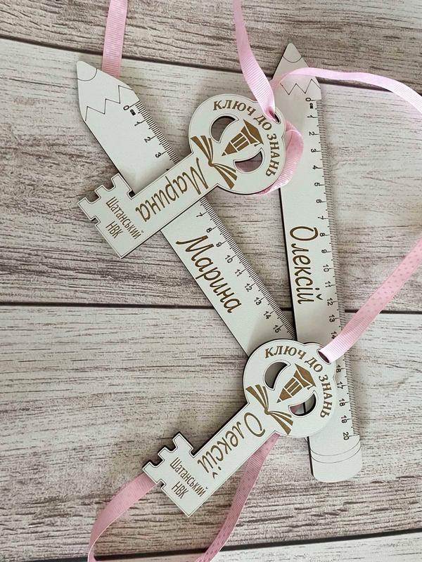 Унікальний символічний подарунок для дітей на 1 вересня та випускний. 📦 У наборі: - ключ 11,5×5,5 см з індивідуальним написом - іменна лінійка з ім'ям дитини ✅ Переваги: - персоналізація (будь-яке ім'я чи текст) - ручна робота з якісних матеріалів - стильний та практичний сувенір