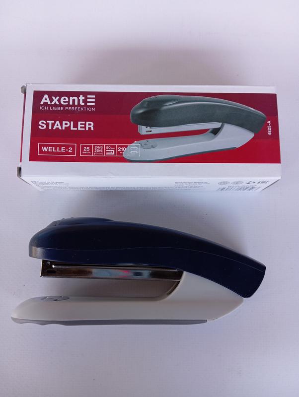 Степлер Axent Welle-2 (4825), 25 арк. Надежный и компактный степлер для ежедневного использования дома, в офисе или школе. - Сшивает до 25 листов (80 г/м²) - Использует скобы 24/6 - Глубина сшивки: 95 мм - Прочный пластиковый корпус + металлический механизм - Прорезиненная основа - не скользит - Окошко для контроля скоб Идеальный баланс качества и удобства!