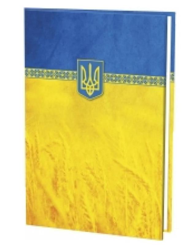 Адресная папка папки формата А4 на подпись и для приветствий - двухцветная обложка желто-голубая с трезубком. Внешне папки- ламинированное покрытие, полноцветная печать, внутри папка обклеена высококачественной белой бумагой