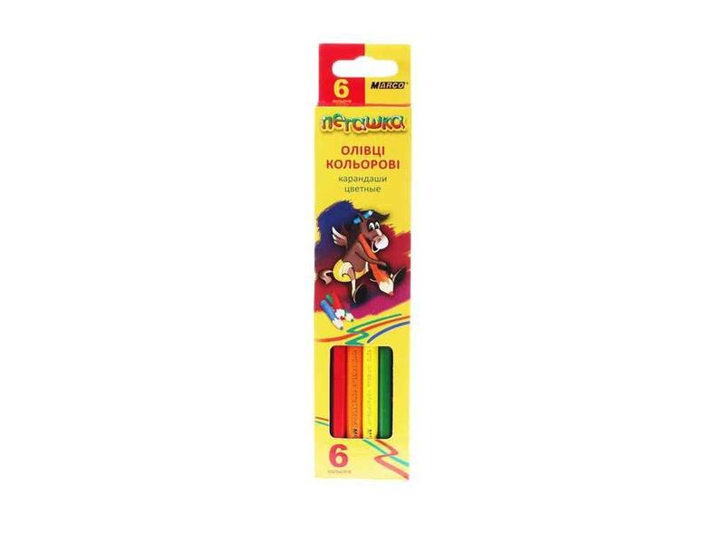 Карандаши пегашка 6 цветов no1010-6 cb длинные шестигранные тм marco