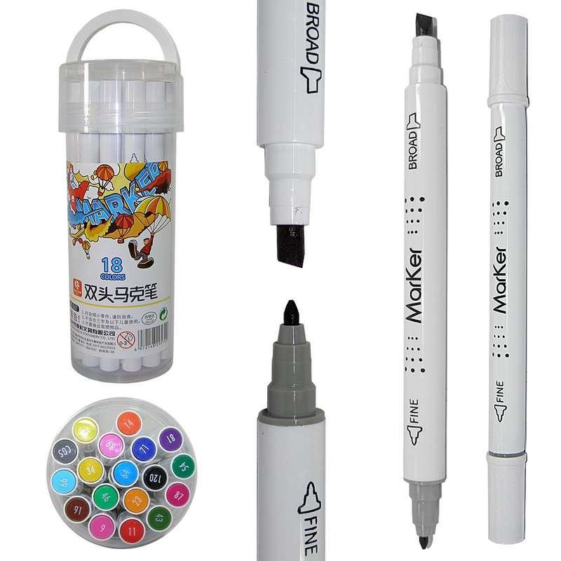 Скетч-маркеры marker 18 цветов двусторонние (для толстых и тонких линий)