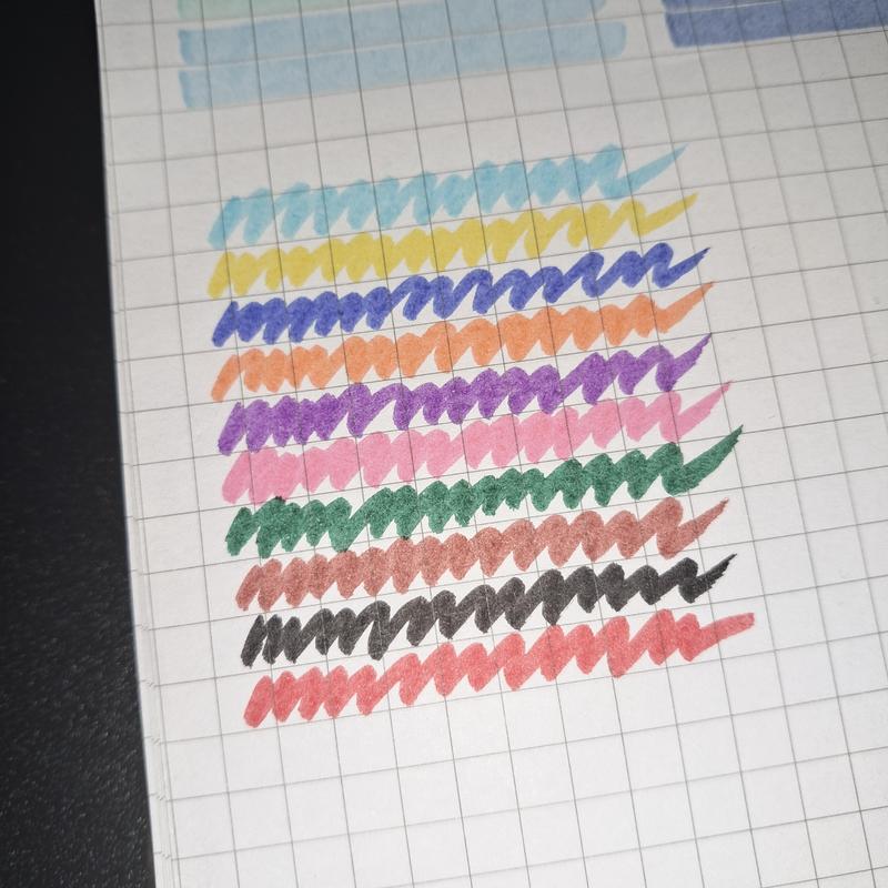 Набор маркеров с кистью для рисования имеет 10 ярких цветов. С одной стороны толстый кончик, похож на кисточку - брашпен, с другой - тоненький, как капиллярная ручка