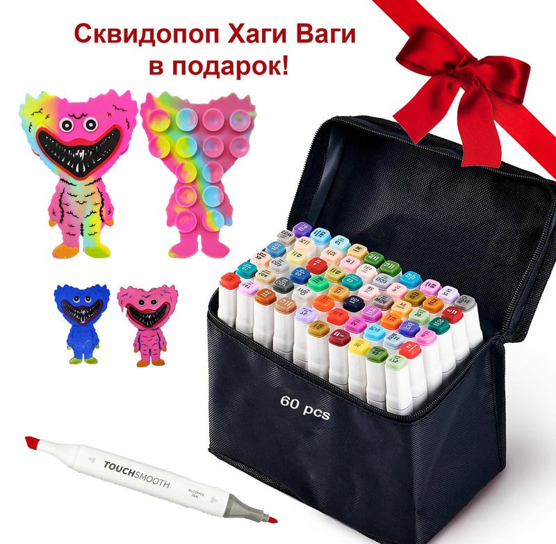 Набор качественных маркеров 60 штук touch smooth для скетчинга + сквидопоп хаги ваги