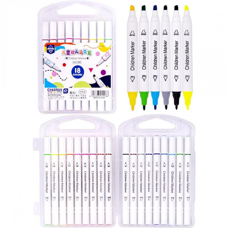 Набор фломастеров двухсторонних 18 цветов "children marker" 190-18 в пластиковом боксе