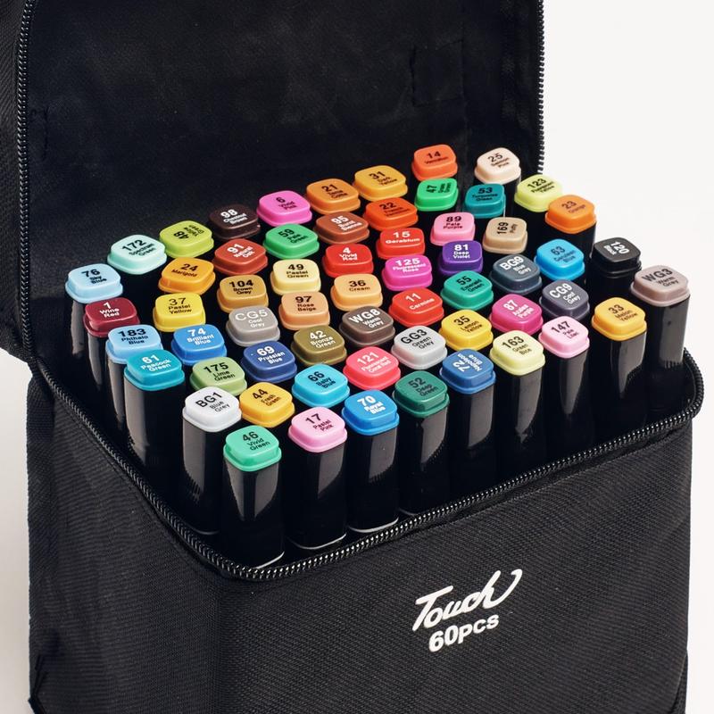 Большой набор скетч маркеров 60 цветов touch raven в черном чехле для рисования