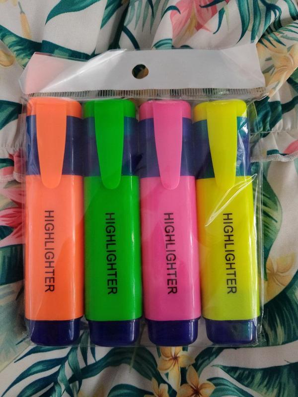 Набор текстовых маркеров из четырех цветов: оранжевый, зеленый, розовый, желтый. 🖍️ Быстро сохнут - не размазываются. ⚡ Удобно держать в руке. Компактная коробка - легко помещается в пенал, сумку или рабочий кейс. 🎒 Удобные в использовании, идеально подходят для конспектов, заметок, подготовки к экзаменам или работы с документами.