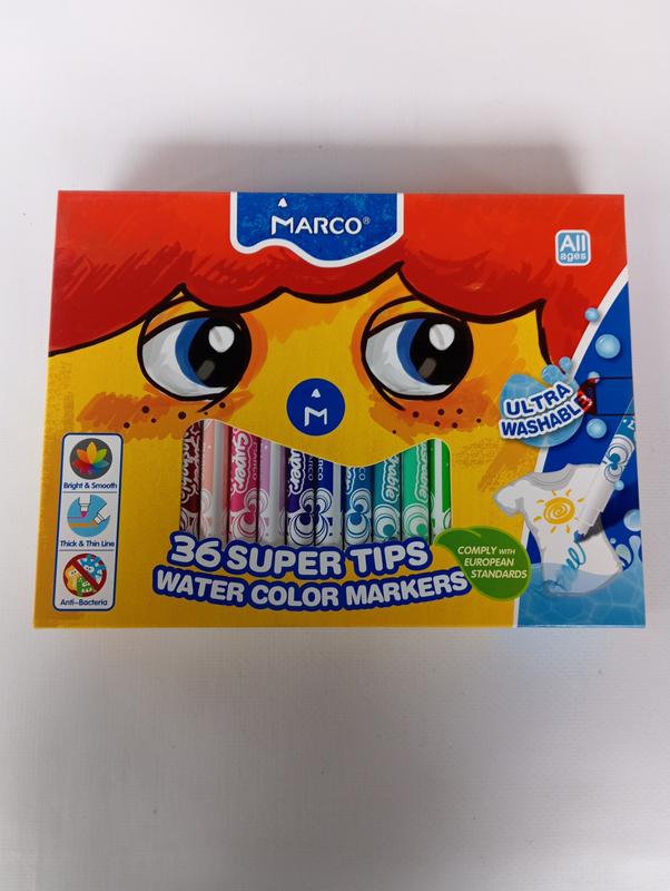Фломастеры Marco 1630-36, 36 цветов Набор фломастеров Marco 1630-36 — идеальный выбор для юных художников, школьников и всех, кто любит рисовать! В наборе 36 ярких и насыщенных цветов, которые прекрасно сочетаются между собой и помогают создавать красочные рисунки. Фломастеры имеют водорастворимые нетоксичные чернила, равномерно наносимой на бумагу, и не просачивающихся сквозь нее. Прочный конусный наконечник позволяет делать как тонкие контуры, так и широкие мазки, а удобный корпус обеспечивает комфортное удерживание даже для детей.