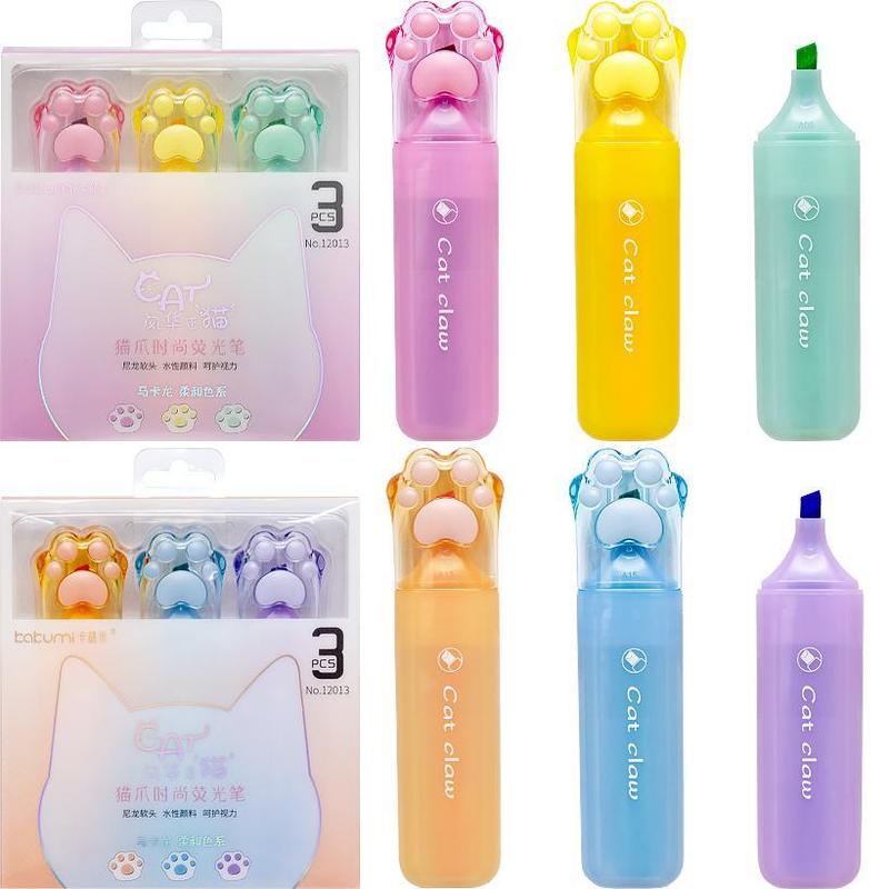 Набір текстовиділювачів 3 кольори "котяча лапка" 12013-h knz