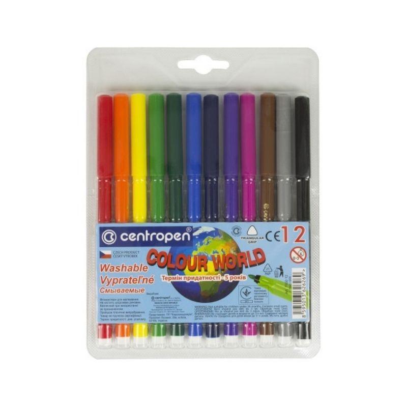 Фломастеры с легко отпирающимися чернилами на водной основе.Яркие и насыщенные цвета.Легко смывается с рук и отпирается с одежды. Чернила безопасны для здоровья.Круглый пишущий узел. Ширина следа 1-2 мм.Пишущий узел выдерживает большую нагрузку без деформации.Эргономичная форма зоны захвата уменьшает напряжение мышц пальцев.