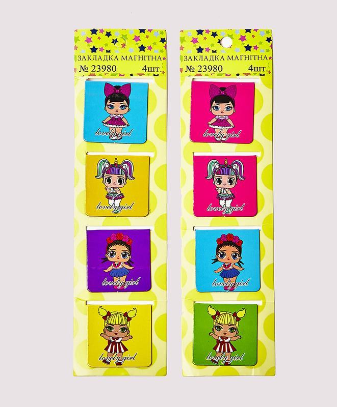 Закладка магнітна для книг 4*4см, 4 штуки "лялька"