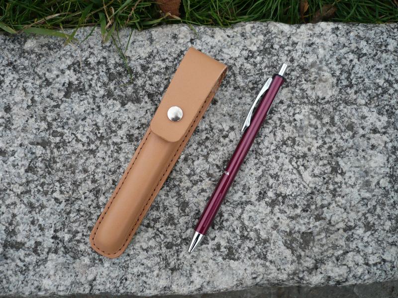Металлическая шариковая ручка Zebra ( Япония ). Механизм стержня кнопочный, используются гелевые стержни. Длина 140 мм, диаметр 9 мм. В комплекте футляр ручной работы из кожи растительного дубления с матовой лицевой поверхностью ( Италия), цвет кремовый. Чехол прошитой вощеной нитью 0,45 мм. Ценность: 500 грн. Отличный подарок для мужчины или женщины!