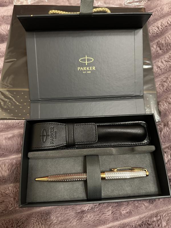 Набор Parker ручка шариковая SONNET 17 Silver Mistral GT BP + кожаный чехол + в подарочной упаковке GIFT24 (88632b24) Ручка Parker Sonnet 17 Silver Mistral GT BP - это стильный и элегантный аксессуар, который прекрасно подойдет для любого делового лица или ценителя искусства письма. Эта шариковая кисточка имеет прочный и эргономичный корпус из нержавеющей стали с серебристым покрытием, которое придает ему изысканный вид. Золотистое покрытие на наконечнике и клипсе придает этой ручке дополнительный шарм. Ручка оснащена удобным механизмом поворота, который позволяет легко выдвигать и открывать стержень для письма. Шариковый стержень обеспечивает плавное скольжение по бумаге и четкие линии, что делает письмо комфортным и легким. Кроме того, в комплекте с ручкой идет стильный кожаный чехол, который защищает ручку от повреждений и делает ее удобной для переноски в сумке или кармане. Также ручка в подарочной упаковке GIFT24, что делает ее отличным подарком для близкого человека или коллеги. С ручкой Parker Sonnet 17 Silver Mistral GT BP вы сможете писать с удовольствием и стилем, подчеркивая свою индивидуальность и делая свои письма по-настоящему особенными.