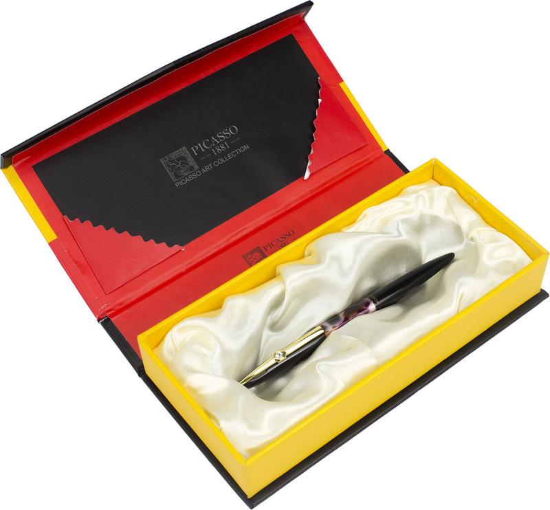 Ручка капиллярная в картонном пенале Picasso 988 Ручка Picasso капиллярная, корпус ручки черный, глянцевый, с вставками золотого цвета и цветным панно, в прочном картонном футляре