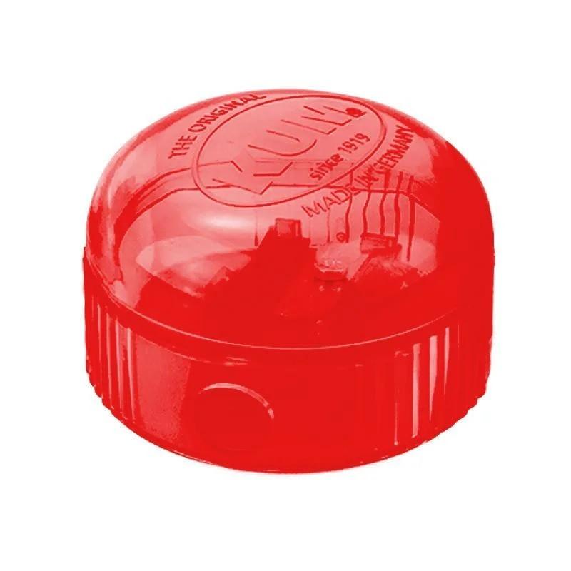 Пластикова стругачка KUM з контейнером. Застосовується для заточування кольорових і графітних олівців діаметром до 8 мм круглої, шестигранної, трикутної форми. Має отвір, що закривається. Надгострі вигнуті леза легко заточують олівці. Корпус із первинного пластику дуже міцний і зроблений максимально точно. Леза захищені від іржі.
